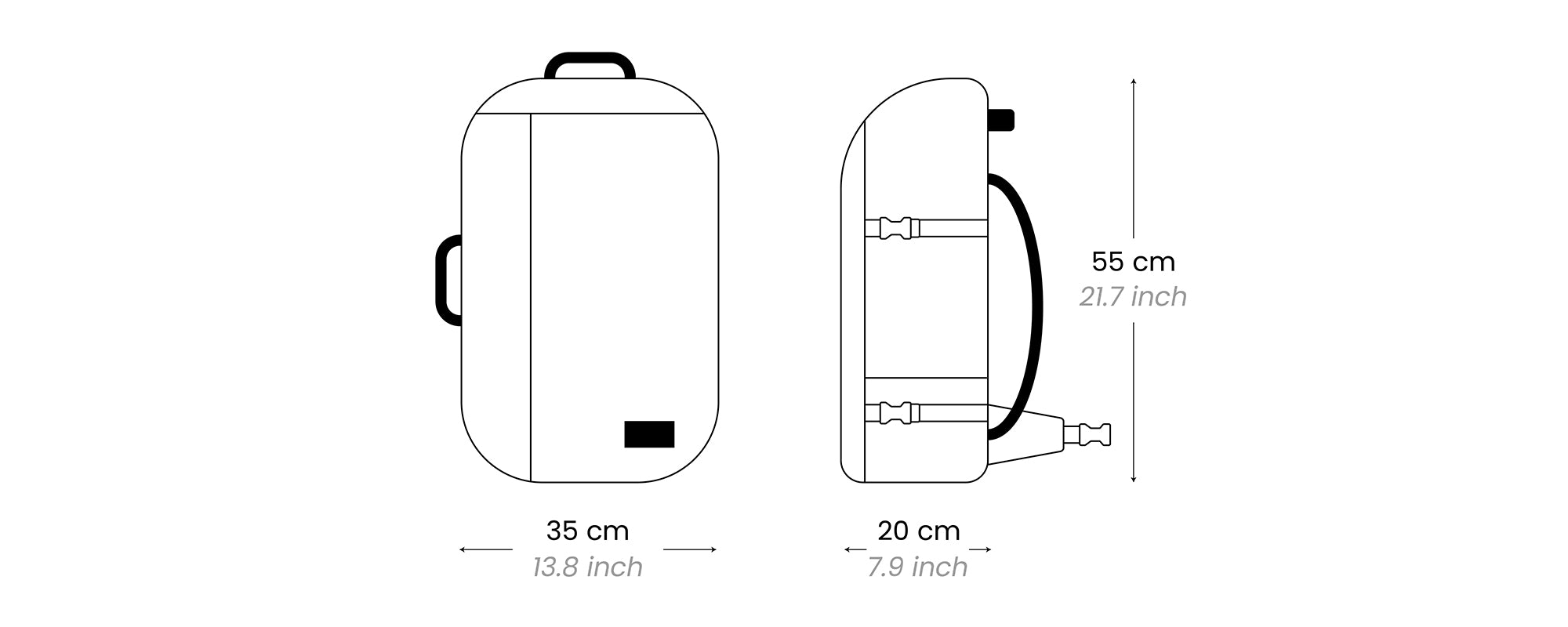 Ryanair | 55 x 40 x 20 cm | 22 x 16 x 8 in |