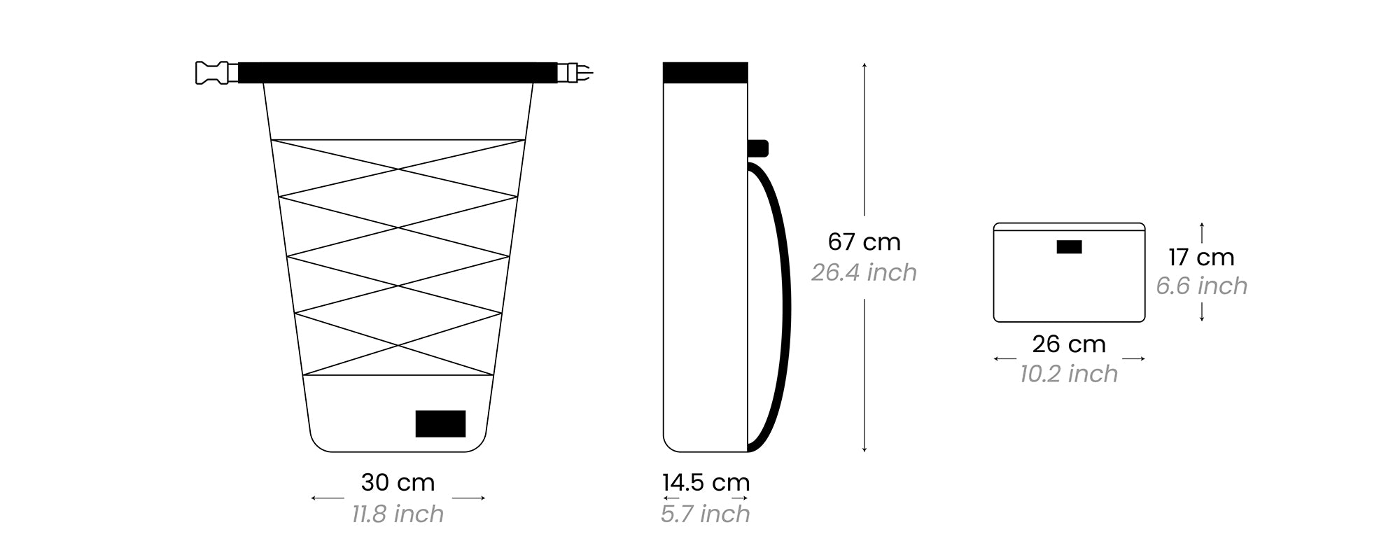 ABMESSUNGEN: 67 x 30 x 14.5 cm / 26.4 x 11.8 x 5.7 inch