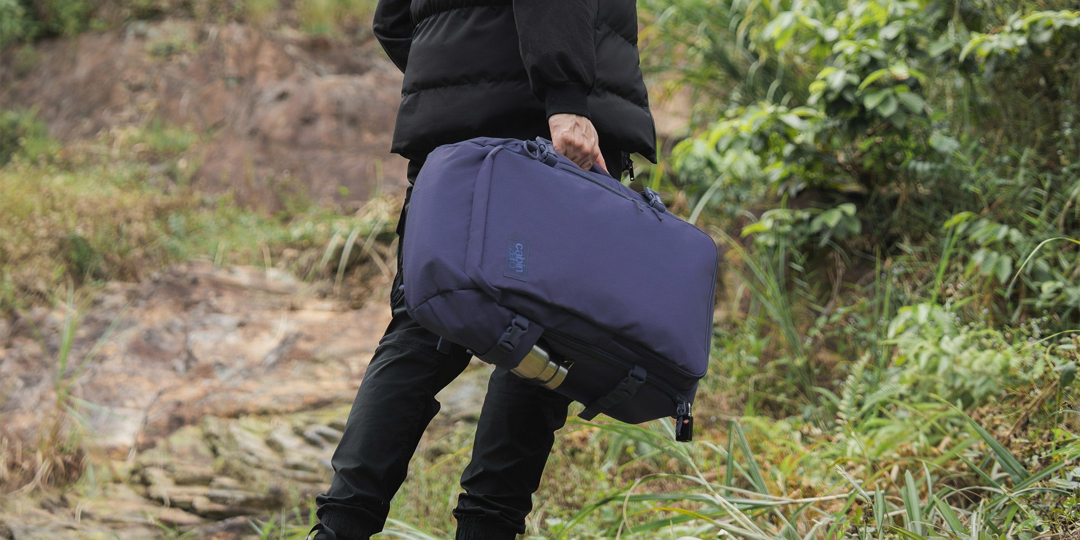 Schlendern Sie durch die Terminals und entlasten Sie Ihren Rücken mit einer Trolley-Hülle, mit der Sie Ihre CabinZero-Tasche sicher an Ihren Rollkoffern befestigen können.