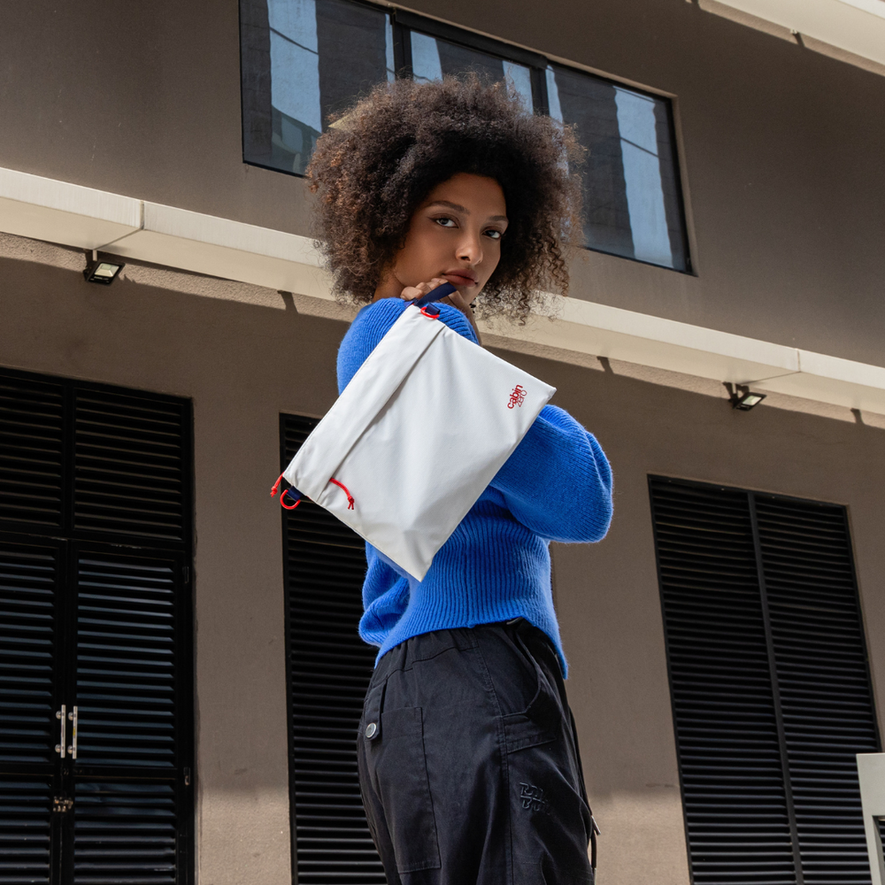 CabinZero Sacoche in Cloud Nine is as stylish as it is practical. Made from eco-friendly materials, this lightweight crossbody keeps your must-haves secure and close at hand. Also rollable and foldable for tucking away in your carry-on.