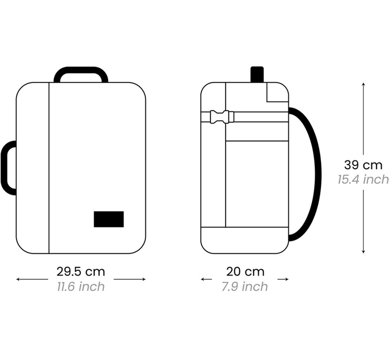 Our Classic Tech Backpack 28L has dimensions 39 x 29.5 x 20 cm, which can be brought on board for 120 airlines. Check airlines list below
