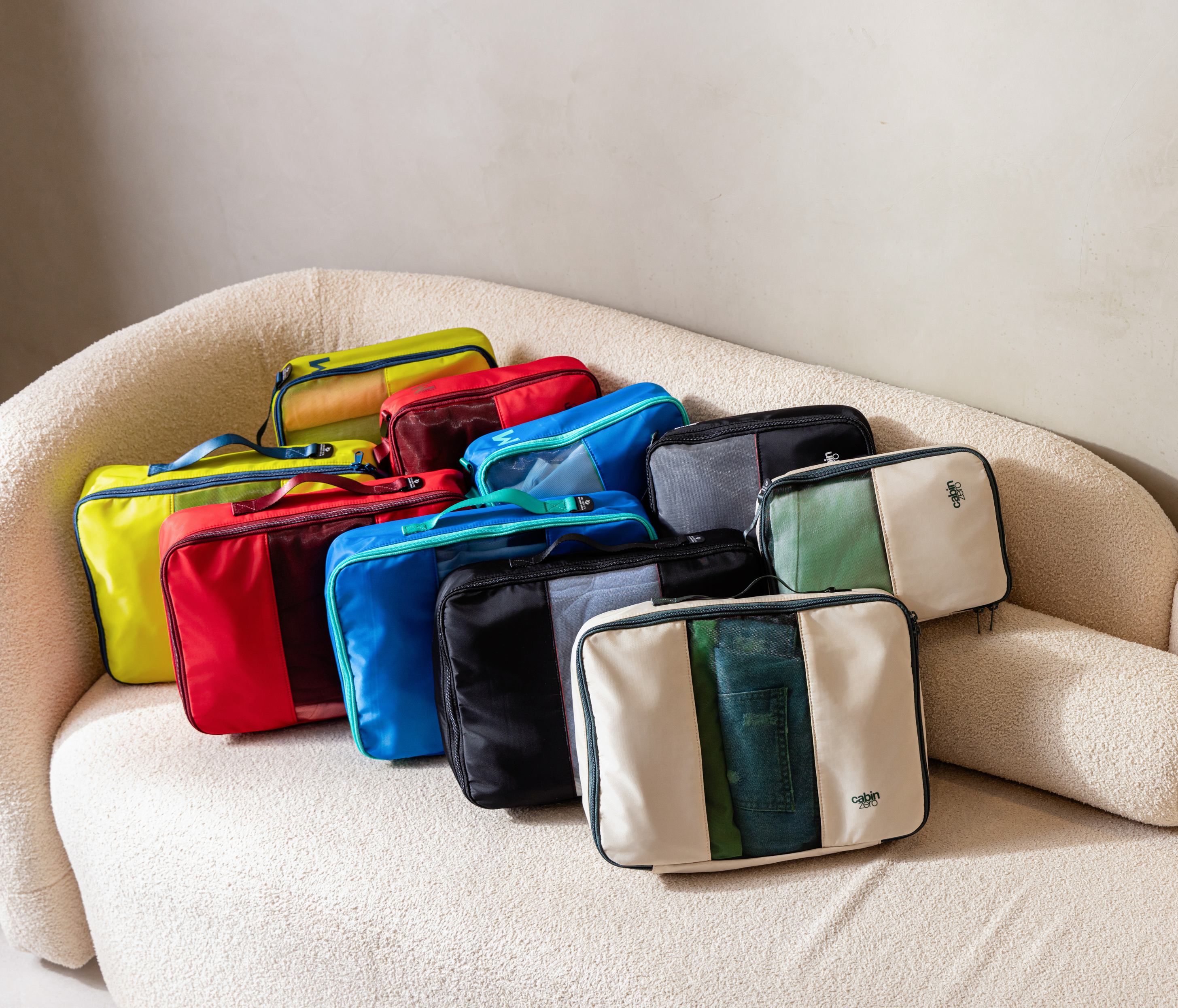 Lux packing cube set in Cebu Sands combines style and structure. With durable materials, mesh windows, and self-standing design, packing has never been easier. Made from 100% recycled nylon with water repellency.